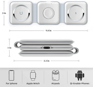 Charge your phone, Apple Watch, and AirPods all at once! 😍 This versatile wireless charger is compatible with AirPods 2/3, AirPods Pro/Pro 2, and Apple Watch Series 6/5/4/3/2/SE. 📱⌚️🎧
