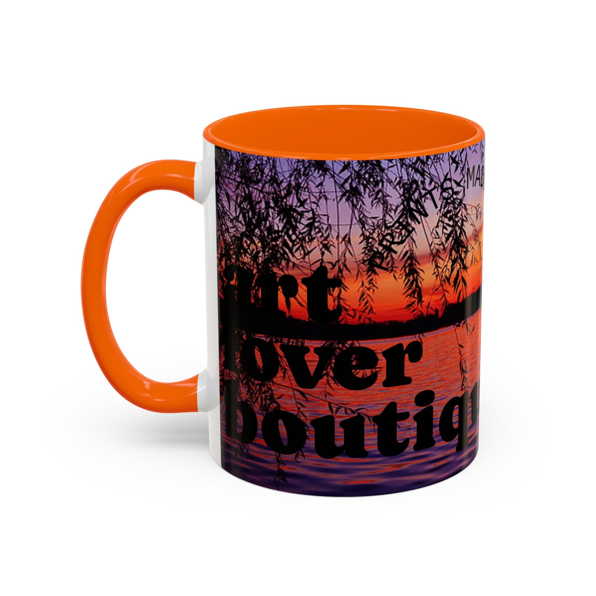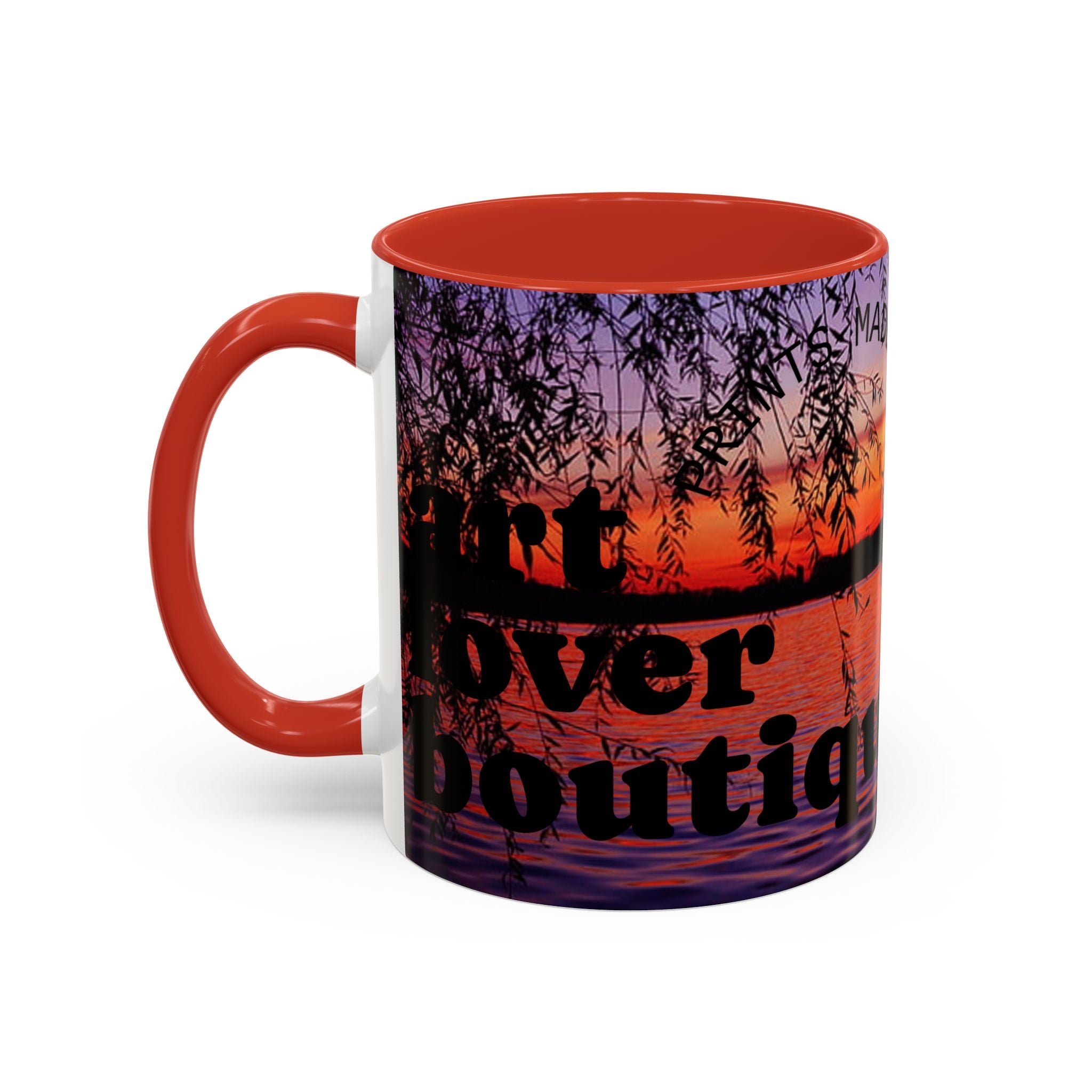 - White ceramic with colored interior and handle and glossy finish